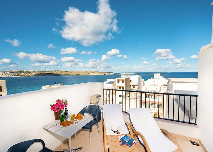 Appartamento Studio Penthouse With Large Terrace With Panoramic Sea Views St. Paul's Bay, di 60 m^2, situato a una distanza di 6 km dalla Baia di Mellieha, offre ai suoi ospiti Wi-Fi sia per affari che per piacere. Sono disponibili attività come windsurf, snorkeling e immersioni per rendere il soggiorno degli ospiti ancora più memorabile.